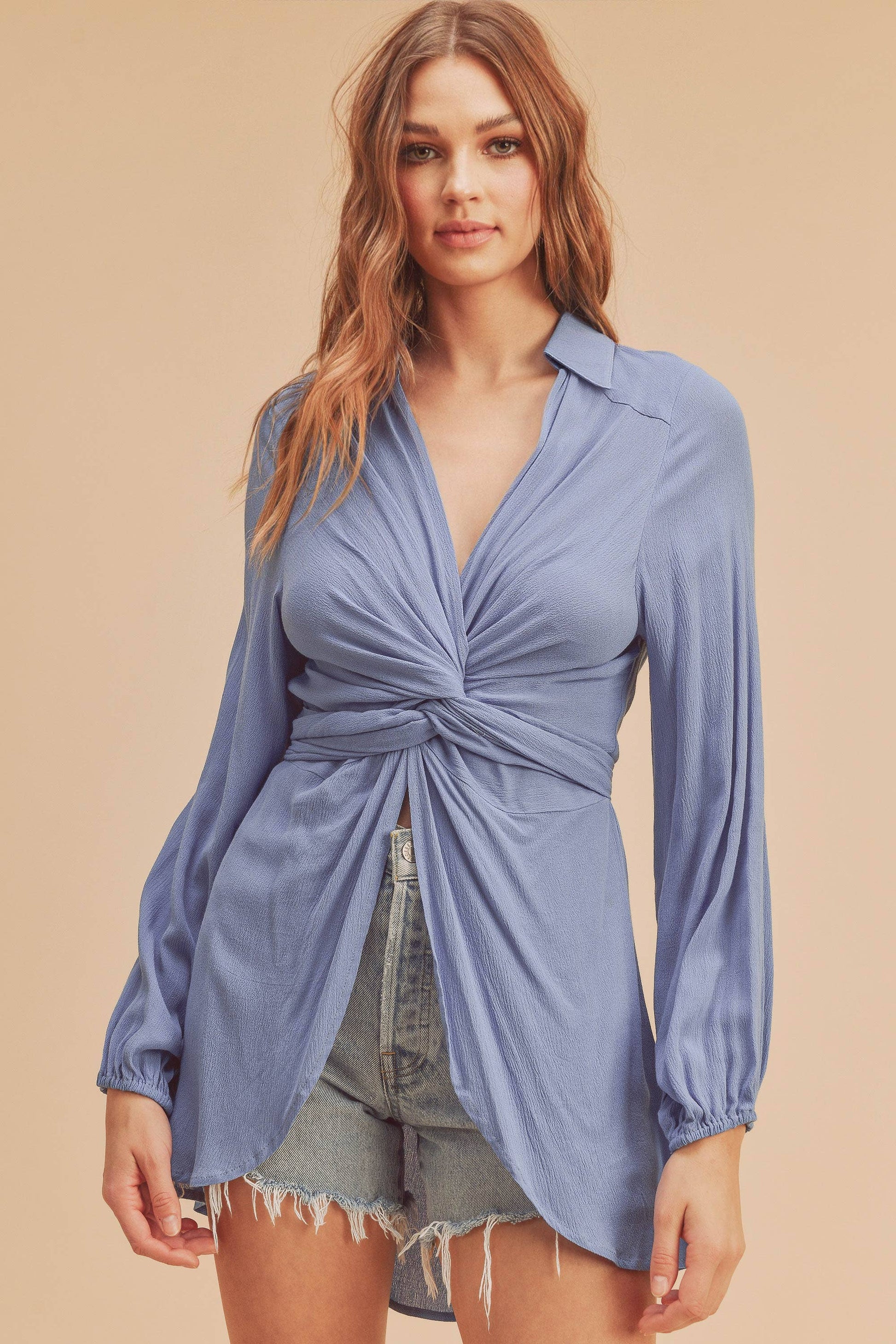 Perfect for lounging out in the sun as a cover up or as a layered look, the Margot top features a classic collar with lower back hemline for added dimension. Wear her tied at the front or wrapped at the waist.