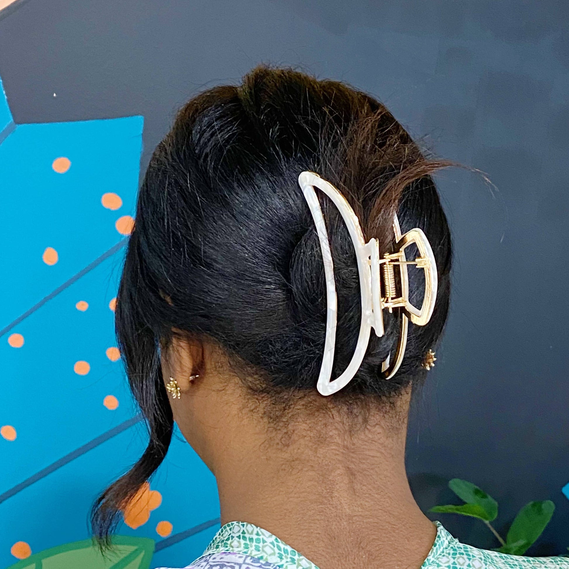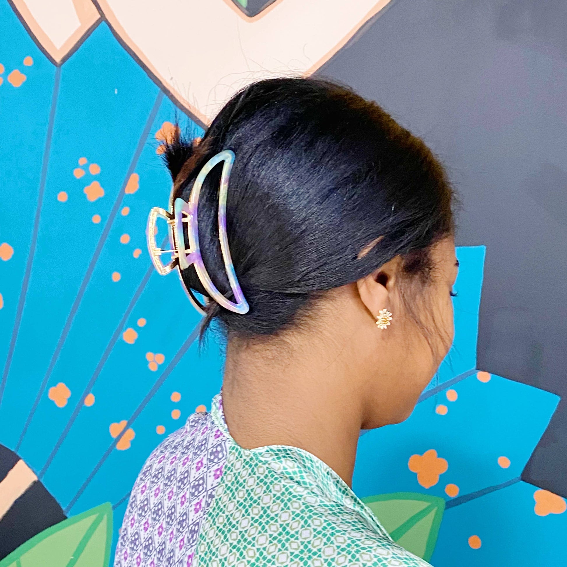 These hair claws are so trendy and fun! Their outlined shape makes them minimalistic and chic! Rainbow option is giving lover era <3