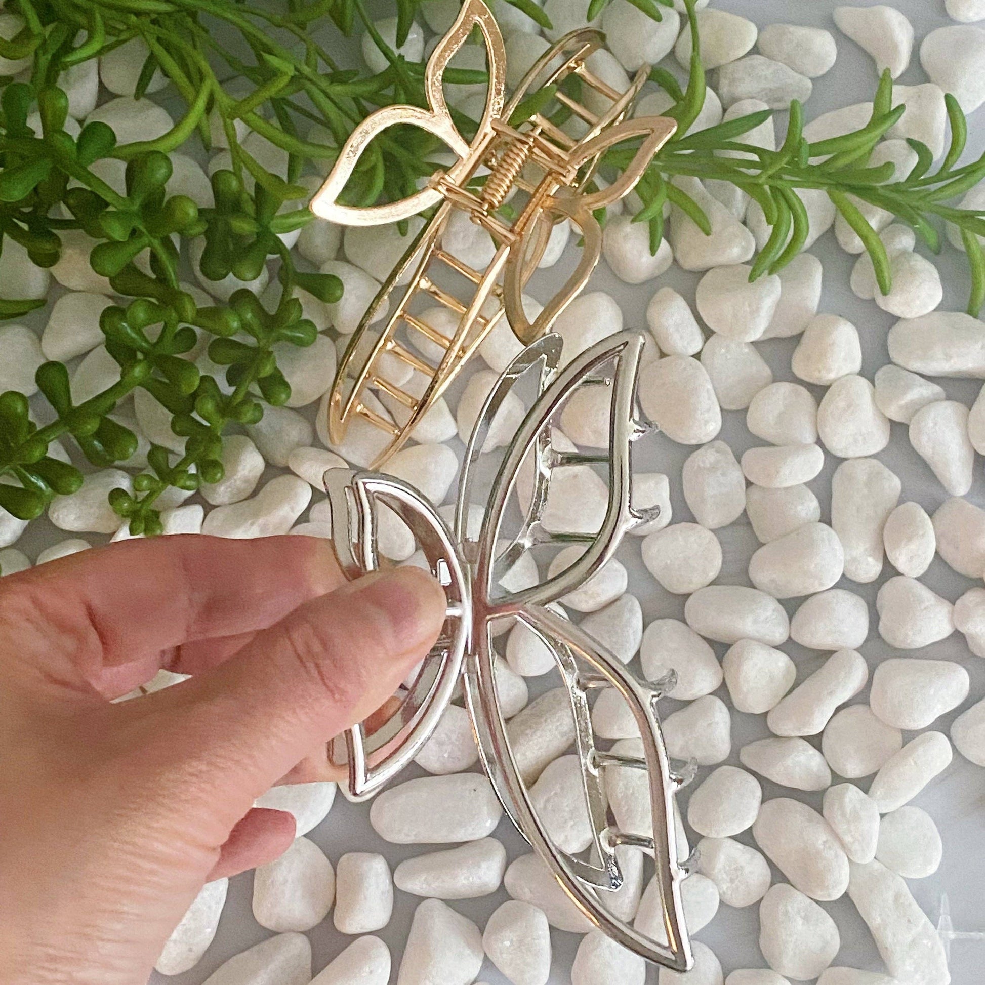 This modern butterfly hair claw has a beautiful outlined shape and sturdy design, it's perfect for pulling hair back in a stylish and secure way.