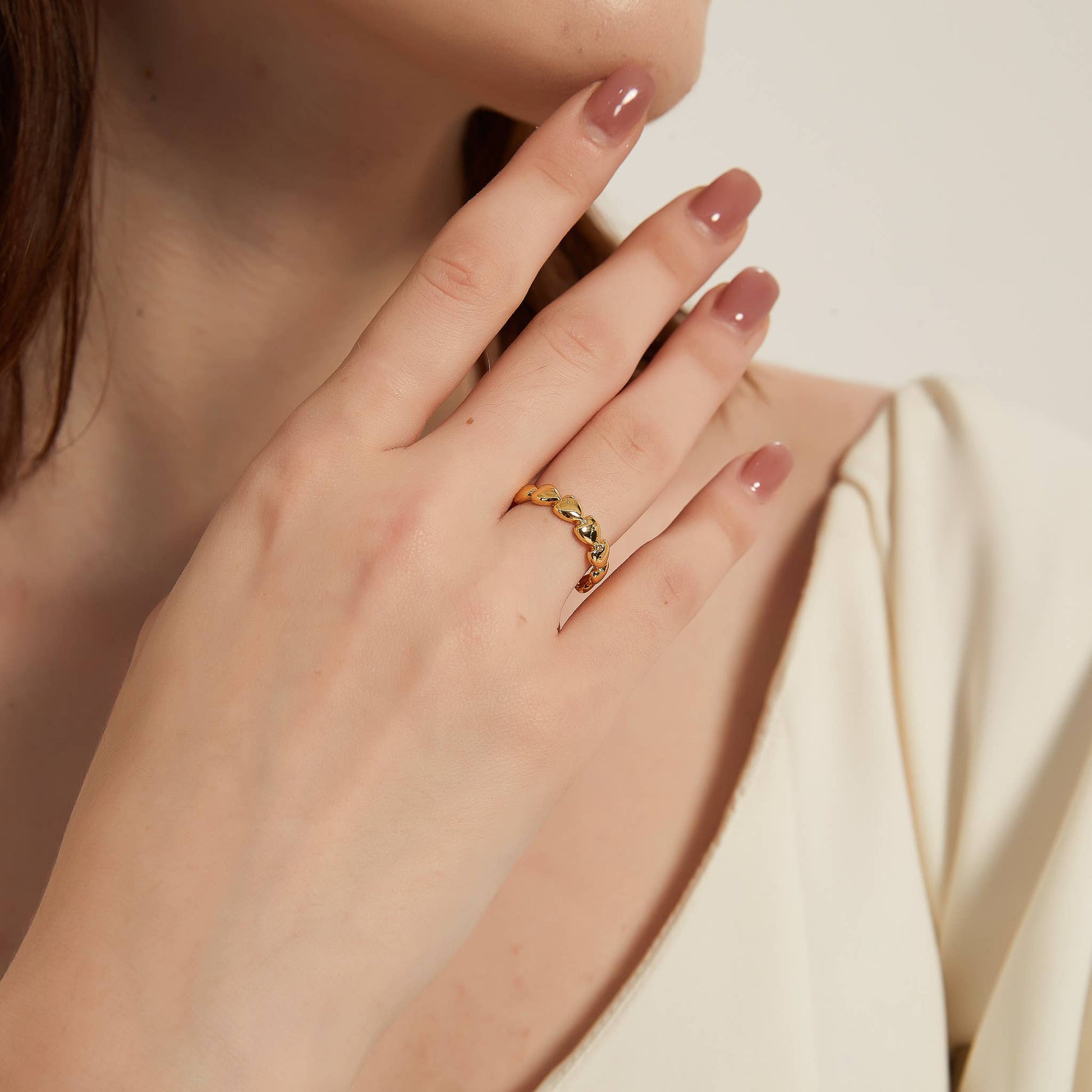 MATERIAL finish: 18K gold material: tarnish resistant stainless steel SIZE one size: open ring-adjustable size 6 to 8: 52mm to 57mm DETAILS + water resistant + tarnish resistant + Hypoallergenic + nickel free + lead free