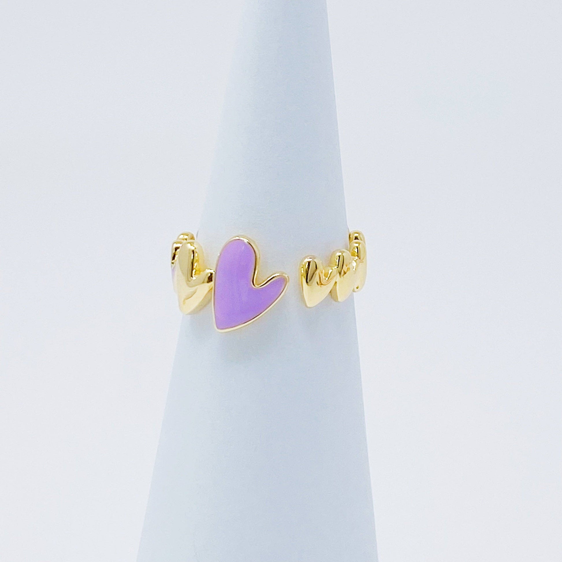 Small hearts put together with oil drop accent color. An opening between hearts looks stylish and makes it fit easy!